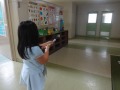 理科「とじこめた空気と水」の学習で、空気鉄砲を使い、閉じ込められた空気について考えました。玉が遠くにとぶ時となかなかとばないときがあることに気が付き、どうすれば遠くにとぶのかについて、いろいろ試して考えました。「ポン。ポン。」と玉がとぶ音が響いていました。