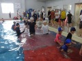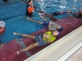 今日は3〜6年生が着衣水泳をしました。ベスパスイミングスクールの先生方に教えていただきながら、まず着衣のまま水に入り歩いたり走ったりして、陸上とは違い、水の中ではとても動きづらいことを体感しました。次に、顔を上にして水に浮く方法や、ペットボトルやビニール袋を使って、自分の命を守るためにどのようにしたらよいか体験しました。子どもたちは川や湖、海などで遊ぶ機会があると思います。今日の体験を生かして,いざというとき、自分の命は自分で守ってほしいと願っています。