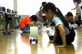 理科「とじこめた空気と水」の学習で、空気鉄砲を使い、閉じ込められた空気について考えました。玉が遠くにとぶ時となかなかとばないときがあることに気が付き、どうすれば遠くにとぶのかについて、いろいろ試して考えました。「ポン。ポン。」と玉がとぶ音が響いていました。