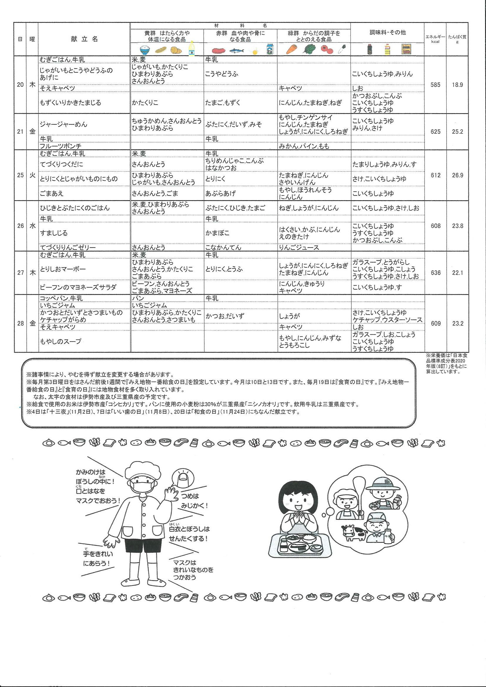 11月20日から28日の献立です。