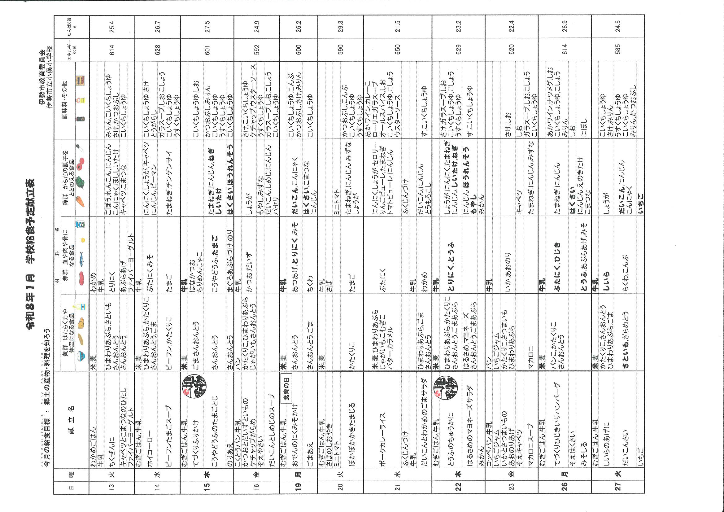 1月の献立表A