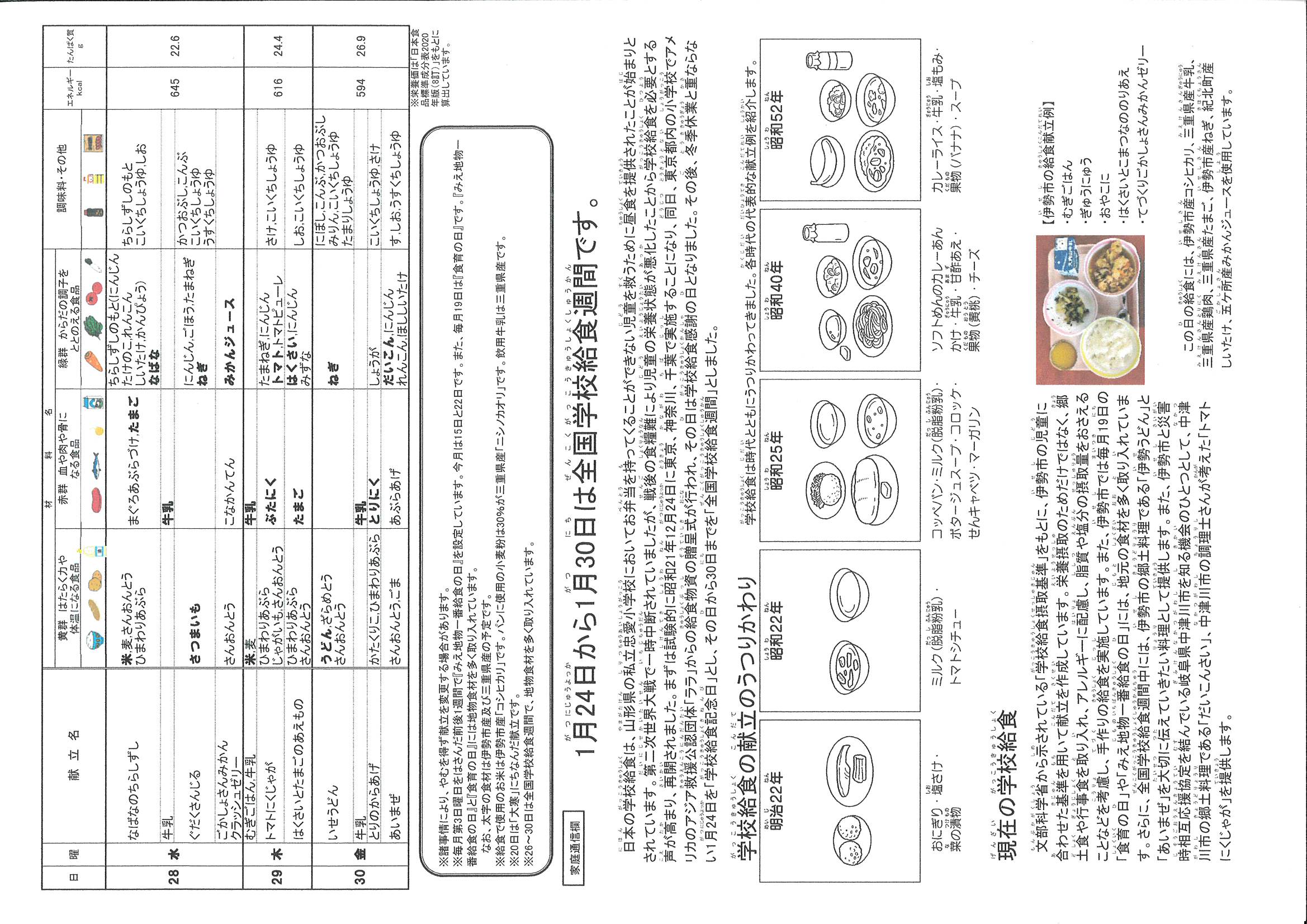 1月28日から30日までの献立表です。