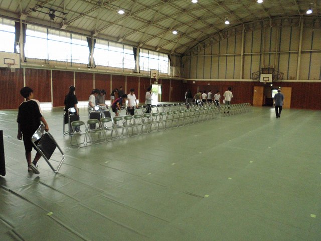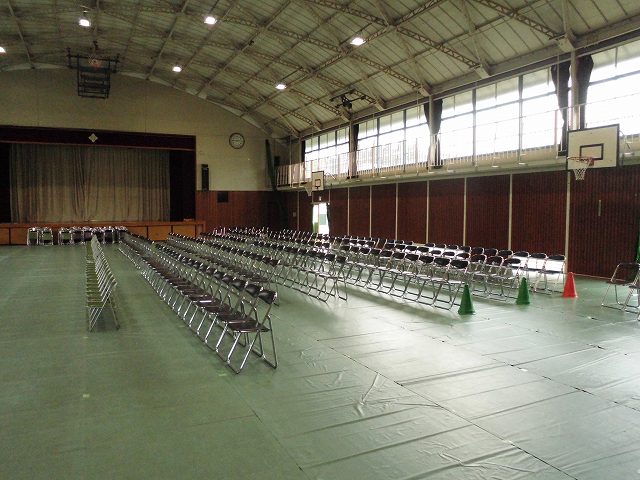 今日の午後、6年生による会場づくりがありました。全面シートひき、イス出しです。在校生112人、保護者地域80人、教職員20人、楽団80人という、とてつもない数のイスを20人強の6年生ががんばって準備をしました。