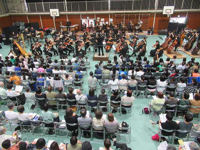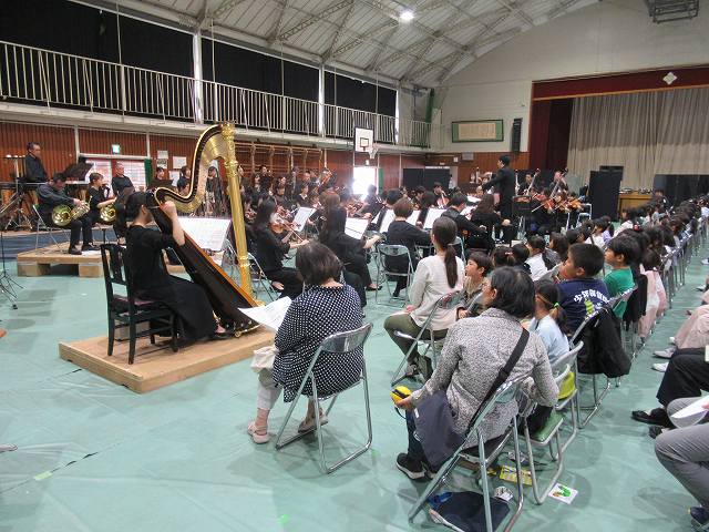 文化庁の派遣事業で、大阪交響楽団のみなさんの演奏を聴きました。前日より会場づくりをしていただき、朝からリハーサルをして、いよいよ11:00開演でした。