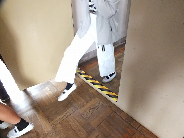 防火扉は、5cmほどの高さの壁が床にあるので、慣れていないとつまづきます。こけたりすることで避難が遅れたりすることもありますので、訓練することはとても大事だと思います。
