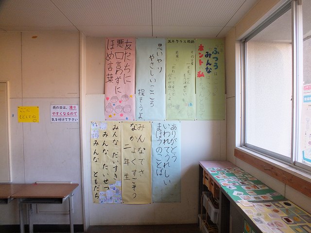 各クラスで決めたスローガンは、学校のメインコーナーに展示され、子どもたちが毎日見て、より良い学校へと頑張ってくれることを見守っています。