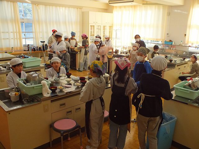 5年生が家庭科の調理実習をしました。学習内容は、主食であるごはんとお味噌汁を作ることです。これができると、日本の食卓の基本部分ができることになります。