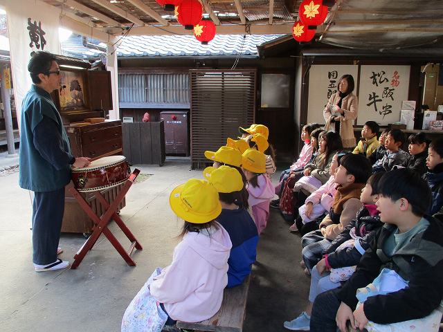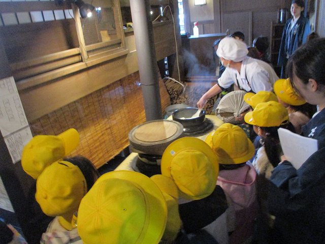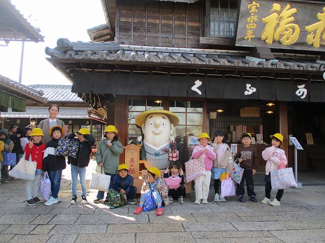 イオン伊勢店からの出発で子どもたちもわくわくどきどき、おかげ横丁での太鼓の演奏などで楽しんだあと、あそび棚にいって、かまどで炊いたご飯をお結びにしていただく体験をしました。