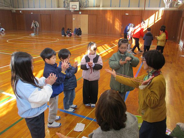 めんこ、けんだま、おてたま、あやとり等、昭和のころにあった遊びを体験します。