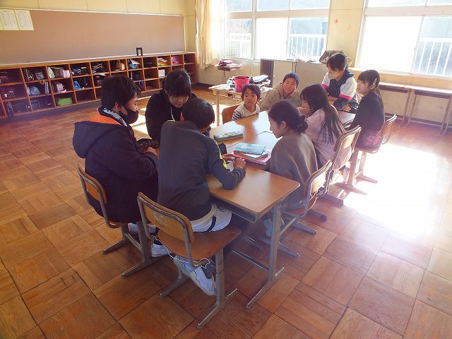 日頃、集団で登下校している通学団の会議をしました。朝の集合や歩き方、あいさつ、そして道路や待ち場所の安全について、意見をだしました。