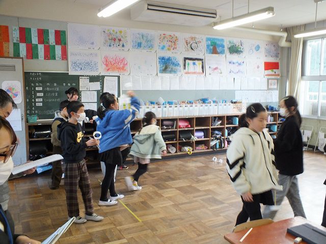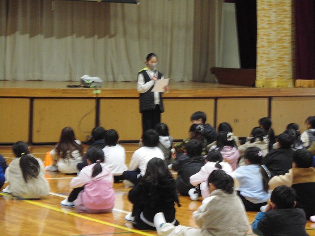 ドッジボールや鬼ごっこなど、一緒に遊んだり、室内で歌を歌ったりと楽しく過ごしました。また生活科の学習の中で作ったプレゼントを渡して、楽しく交流できました。(寒さMAX、すごい寒い中の外遊びでした。見守っている大人が、とても大変。さすが、子どもたちは、寒さの中、元気に遊んでいました)