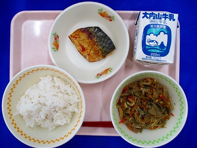 むぎごはん・牛乳・さばの塩焼き・きんぴらごぼう