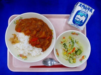 さつま芋のポークカレーライス・福神漬け・牛乳・フレンチサラダ