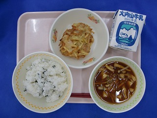 わかめごはん・牛乳・さつまいものかき揚げ・みそ汁