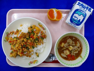 ツナそぼろごはん・牛乳・ごまみそ汁・みかん