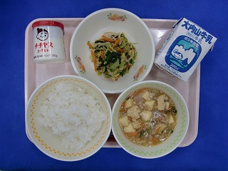 むぎごはん・牛乳・豆腐のうま煮・ひたし・ヨーグルト