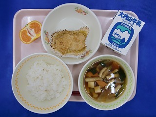 むぎごはん・牛乳・鶏のみそマヨネーズ焼き・けんちん汁・みかん