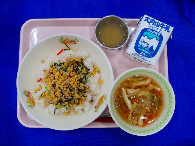 ひじきとぶたにくのごはん・牛乳・すましじる・カラ