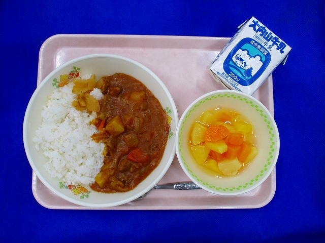 ポークカレーライス・ふくじんづけ・牛乳・フルーツポンチ