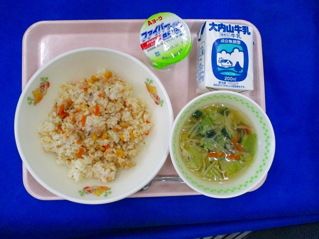 ツナのピラフ・牛乳・やさいスープ・ファイバーヨーグルト