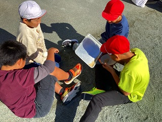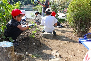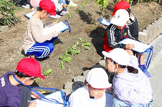 今日は少し育ったところを観察しました。葉っぱの形や大きさ、触った感触などを観察していました。