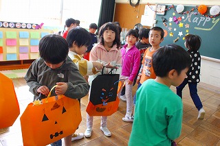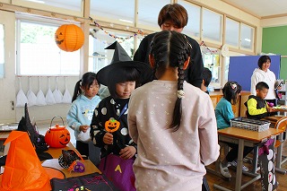 タンポポの4人が1年生とハロウィンパーティーをたのしみました。今日までいろいろな準備を進めたタンポポの4人が1年生を招待しました。