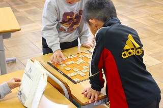 子どもたちは雨の昼休みは教室や図書室、進修文庫で静かに過ごしています。教室でもカードゲームや将棋などをして過ごす姿も見られます。