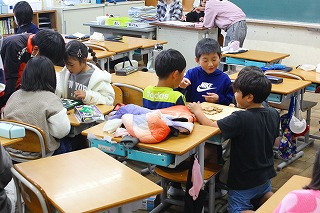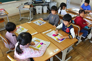 1年生は図工の時間にステキな潜水艦の絵を作成しています。ラミネートシートに絵を描いて、アルミホイルをはさむ作業をしました。どんな絵ができ上るのか楽しみですね。