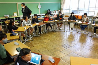 3年生以上の学級委員と、委員会の委員長、児童会役員が集まって生活目標の反省や次の目標について話し合います。