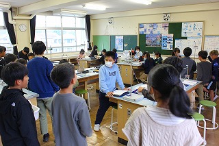 6年生が図工の時間に県立美術館の学芸員さんに来校いただき、美術の鑑賞の出前授業を行っていただきました。