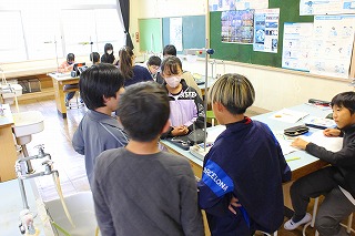 5年生は理科の時間に振り子のせいしつについて実験しながら学んでいます。今日もグループで協力しながら実験を進めていました。
