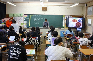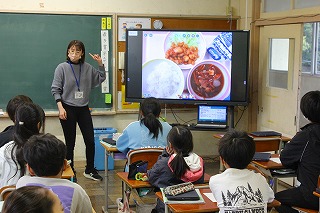 栄養教諭の山上先生に来ていただいて、食育の授業を行っていただきました。昨日は2年生が「おやつ」について考えました。今日は6年生が「バランスの取れた給食のメニュー」について考えました。