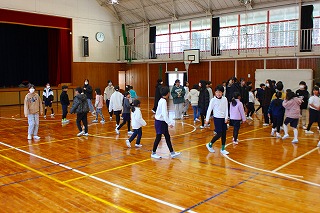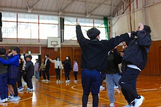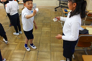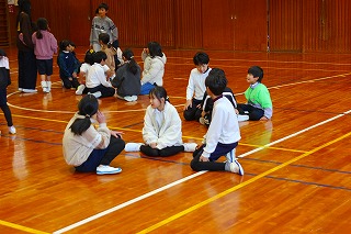 今日も昼休みに児童会集会が行われました。今日は5班〜8班の子どもたちが参加です。今日も「タイコでドン」と「じゃんけん新聞」で楽しみました。