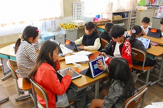 グループに分かれて自分たちが調べたお店について新聞を作っています。仕上がりがたのしみですね。