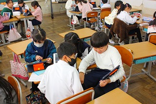 3年生は「総合的な学習の時間」におはらい町のお店について調べたことをまとめています。
