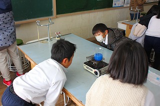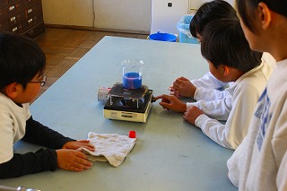 4年生が理科の授業で理科の授業で「水があたたまる様子」について実験しました。