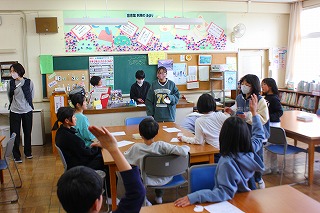 図書委員会で図書館まつりを開催しています。今日は4年生が参加していました。