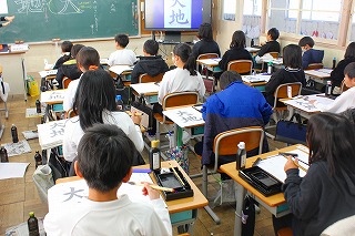 4年生は書写の時間に「大地」という字に挑戦してます。