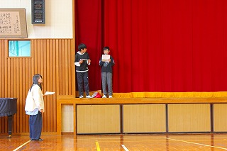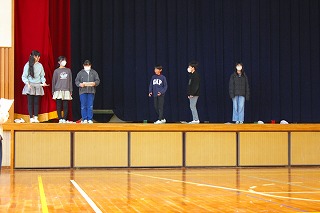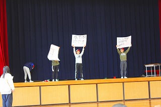 保健体育委員会が風海での発表に向けて練習をしていました。けがの手当てや、風邪の予防についてなど劇をしてクイズを出す練習をしていました。