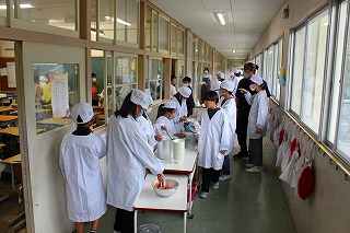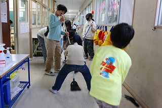 給食の後は昼休みです。その後はみんなで力を合わせて掃除をしています。すみずみまできれいにしています。