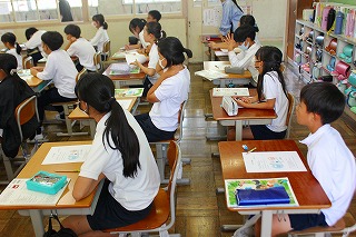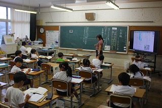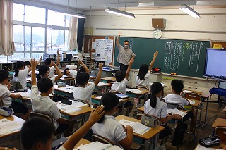 今日は朝から雨の一日でした。初穂曳へ参加した児童もいて、学校の中は少し静かな一日でした。登校していた児童は、学習にしっかり取り組んでいました。