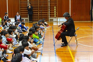 今日は東京アーティスツ合奏団の方に来校いただいて、「子どものためのクラシックコンサート」を開いていただきました。いろいろな場でコンサート活動をされている方の生の演奏と歌を聞かせていただきました。