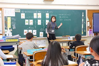 金曜日はALTのシーナ先生が来校してくれます。外国語の授業や生活科で英語に親しむ時間として子どもたちと学習しています。