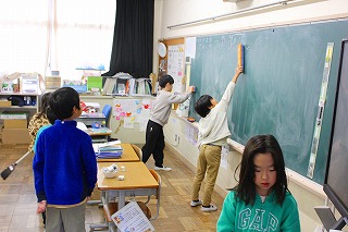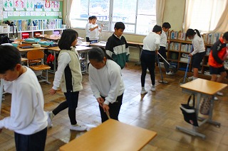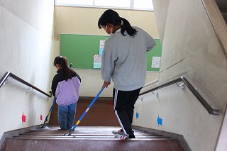 今日は大掃除の日でした。いつもの掃除ではきれいにできない、机の脚の裏についたほこりや、教室のすみずみ、廊下や階段もすみずみまできれいに掃除できていました。