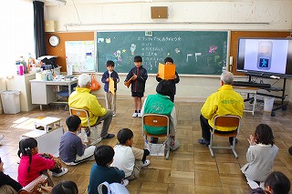 毎日の登下校でお世話になっている安全ボランティアさんへ感謝の気持ちを込めて、2年生が「安全ボランティアさん、ありがとうの会」を行いました。
