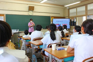 3年生が総合の時間に、伊勢市の方とぎゅーとらの方に来ていただき「キッズサポーター」の授業をしていただきました。