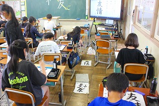 毛筆、硬筆、絵画作品などに各学年で取り組み始めました。