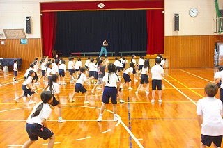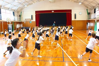 1,2,3年生は体育館でダンスの練習です。まだ、半分ほど振り付けを覚えてきました。これから運動場へ出て練習するまでもう少し振り付けの練習ですね。