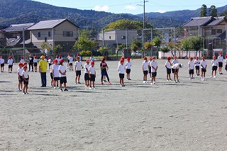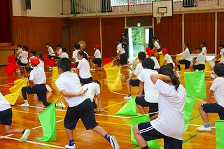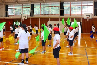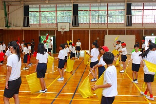 4,5,6年生は6限目にフラッグの練習を体育館で行いました。フラッグの動きと体の動きを合わせての表現になります。完成までの道のりはまだまだ長そうです。