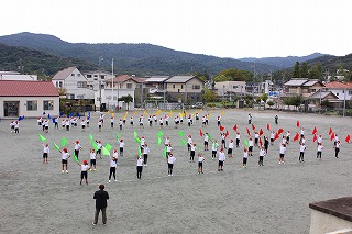 4,5,6年生の表現です。フラッグを使ったダンスでした。一人ひとりの動きが全体の動きとなり、すてきに表現していました